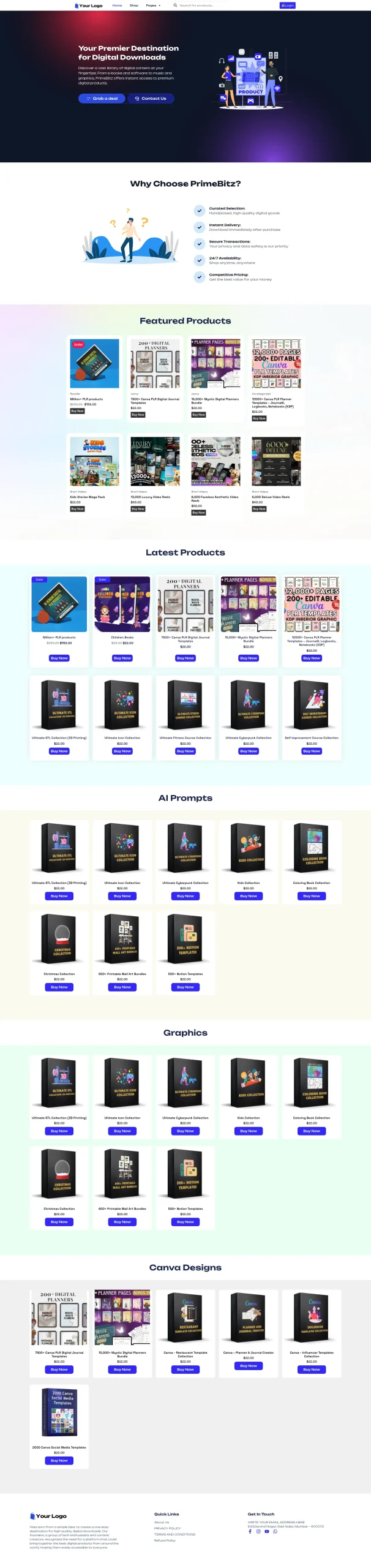 Transform your business goals into reality with Digimart, the complete digital download website designed to give you everything you need to start selling profitable digital products instantly. Perfect for entrepreneurs, freelancers, side hustlers, or anyone looking to enter the digital marketplace, Digimart is crafted with a sleek, modern, and exclusive design that stands out among competitors. Start earning without the hassle of website development, product creation, or setup.