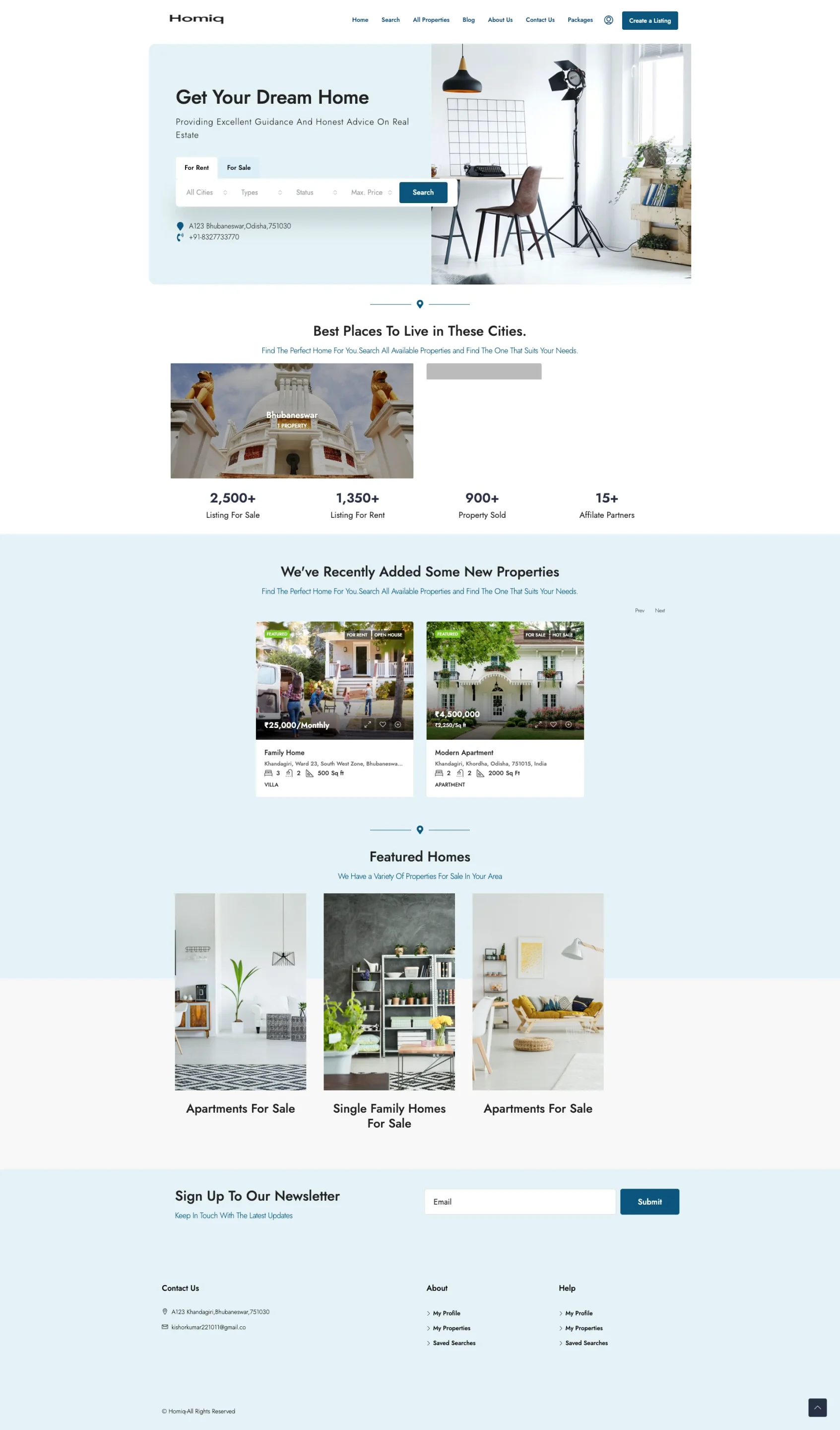 Inquiry forms on every property, newsletter signup, WhatsApp/phone click-to-contact, live chat ready. Convert visitors 24/7