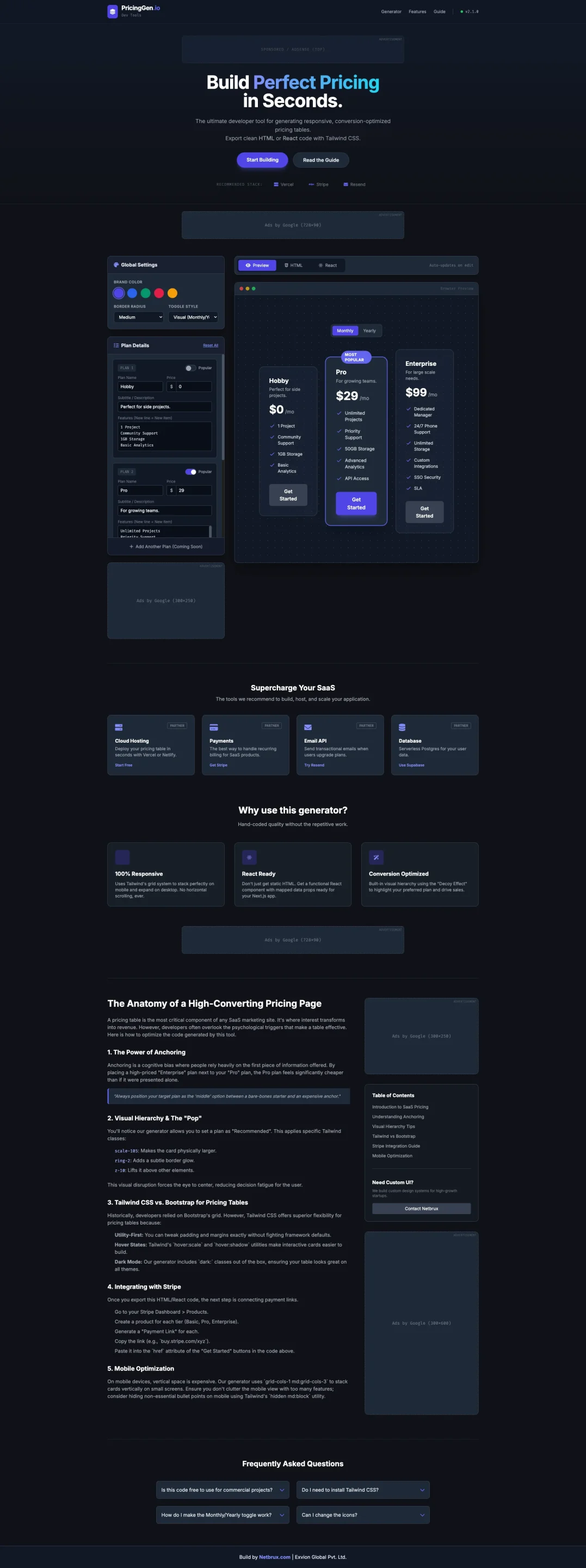 Build stunning, responsive, conversion-optimized pricing tables in seconds with this SaaS Pricing Table Generator. Designed for developers, SaaS founders, and agencies, this tool lets users create polished pricing components with zero repetitive coding.
