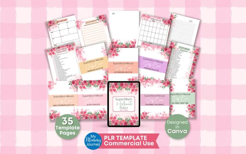 Transform mom life with the SuperMom 1-Minute Self-Care Toolkit, designed to revitalize your spirit and prioritize well-being in just minutes a day. This 35-page PLR Canva template features both filled-in 1-minute tasks and blank pages for personalized self-care moments. Empower your mom audience to effortlessly embrace tranquility and rejuvenation. Grab the SuperMom 1-Minute Self-Care Toolkit now and equip SuperMoms everywhere with the daily dose of self-care they deserve!